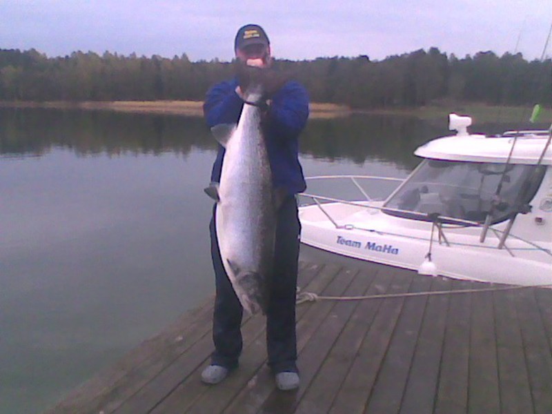 Nu är det lax i vattnet här gosse! En båt tog 4 idag fram till lunch. 20.89 kg togs igår. 21 kilos kommit upp idag. Även fler grova över och kring 15. Jag brukar kolla din blogg så jag tänkte bara lämna en liten rapport om läget. Körde själv en sväng igår men blev tomt, fick en mindre lax runt 6.5 kg härom kvällen. Skitfiske